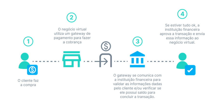 O gateway de pagamento é responsável por: Criptografar as informações financeiras, Proteger os dados sensíveis do cliente, Verificar a validade dos dados do cartão, Prevenir fraudes, Autorizar o pagamento.